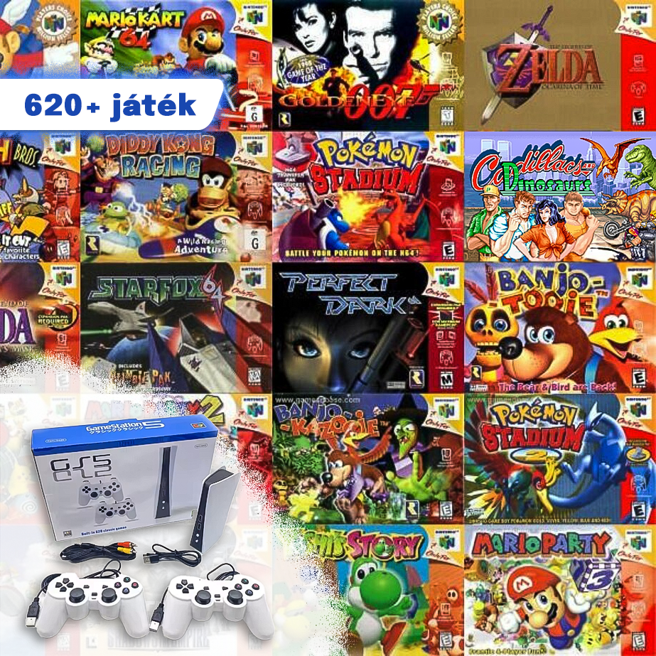 Élvezd a 620 retro játékot előre telepítve a konzolon! Nincs szükség letöltésre – csak csatlakoztasd, és azonnal kezdhetsz játszani a kedvenc gyerekkori játékaiddal!