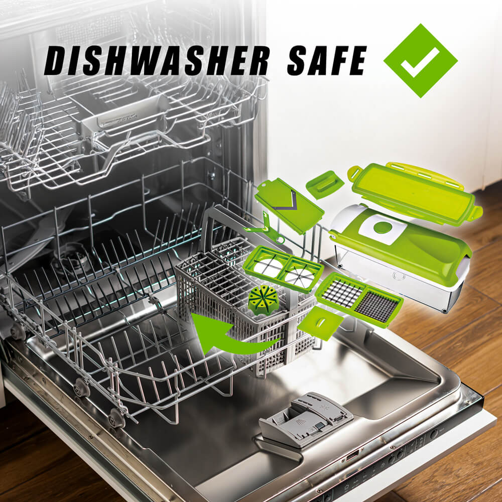 A Nicer Dicer minden alkatrésze mosogatógépben mosható, így a tisztítás gyors és egyszerű. Könnyedén tartsa rendben a konyháját.